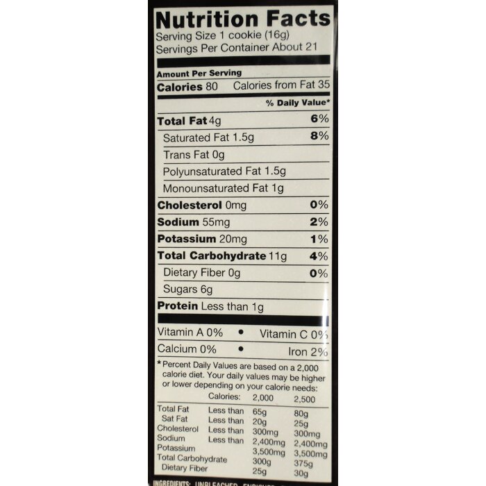 Zutaten: Ungebleichtes angereichertes Mehl (WEIZENMEHL, Niacin, reduziertes Eisen, Thiamin Mononitrat, Riboflavin, Folsäure), Zucker, ZARTBITTERSCHOKOLADE Brocken (Zucker, SCHOKOLADE, Dextrose, KAKAOBUTTER, MILCH, SOJA-LECITHIN), SOJAÖL, teilweise hydriertes Palmkern und/oder Baumwollsamenöl, MILCH, Backtriebmittel (Backpulver, Ammoniumphosphat), Salz, Melasse, Maissirup mit hohem Fruchtzuckergehalt, MOLKE, SOJA-LECITHIN, Aromen, Karamell Farbe. Enthält: WEIZEN, MILCH, SOJA.