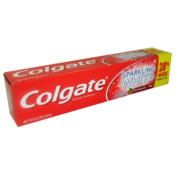 Zimt-Minz -Zahnpasta mit 'Mach-Weiß-Effekt'.